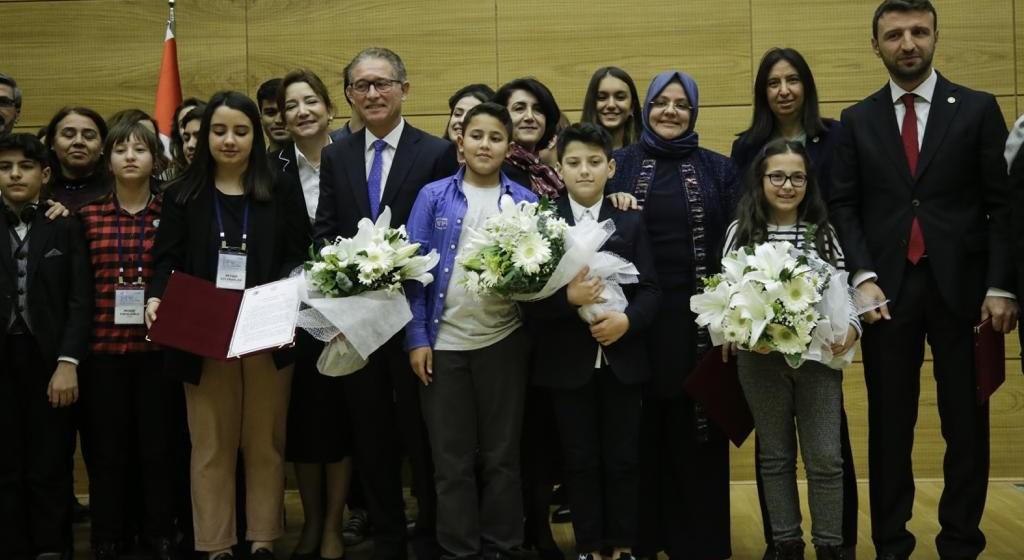 Forumun ardından çocuklar Bakan Selçuk ile birlikte grup toplantısında bildiriyi Cumhurbaşkanı Recep Tayyip Erdoğan’a takdim etti.