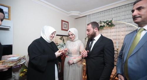 Aile, Çalışma ve Sosyal Hizmetler Bakanı Zehra Zümrüt Selçuk, Esra Hundur ve Sefa Özer’in söz yüzüklerini taktı.