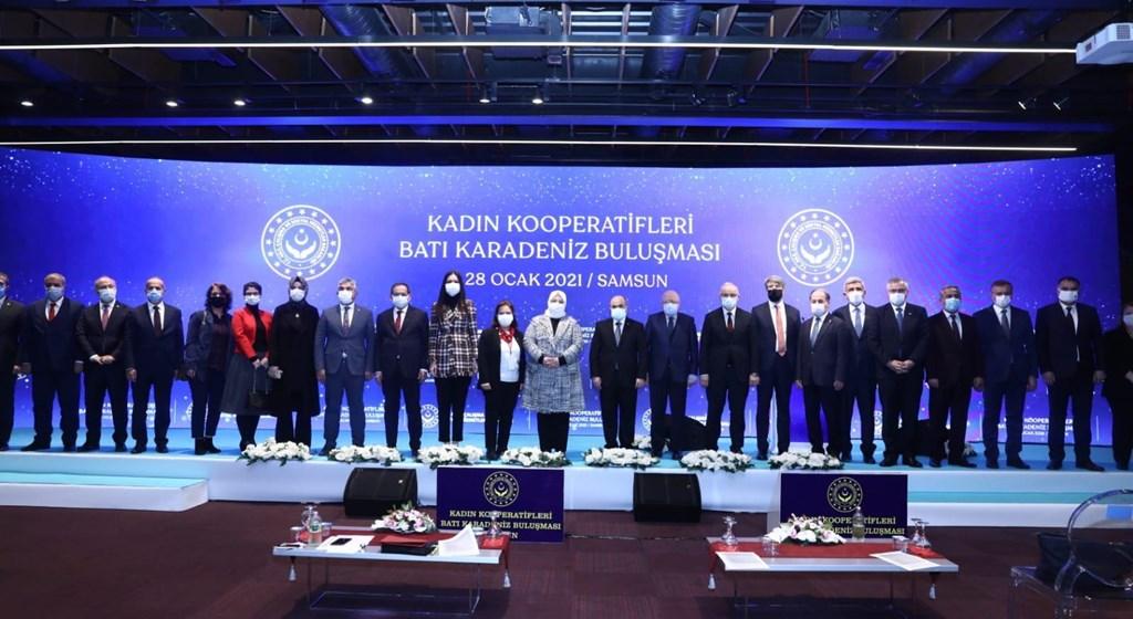 Bakan Selçuk’un katılımıyla Şehit Ömer Halisdemir Salonu’nda düzenlenen Kadın Kooperatifleri Batı Karadeniz Buluşması Toplantısı, Zonguldak, Bartın, Kastamonu, Bolu, Çorum, Sinop, Karabük, Düzce illerindeki vali, milletvekili ile kadın kooperatiflerinin başkanlarının toplantıya çevrimiçi bağlanıp çalışmaları hakkında bilgi vermesiyle başladı.