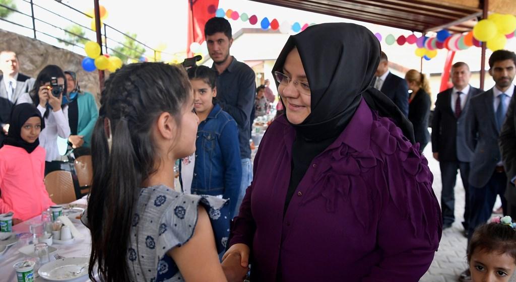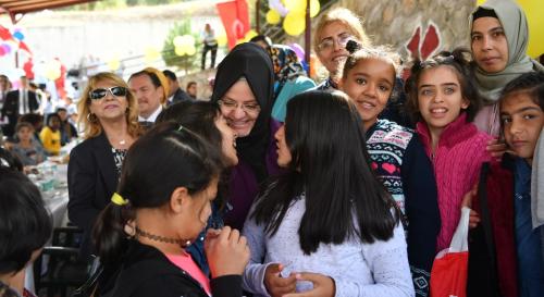 Renkli görüntülerin oluştuğu şenlikte Bakan Selçuk, tüm çocuklara tek tek sarılarak sohbet etti. Bakan Selçuk, kuruluş bakımında kalan Afgan ve Somalili çocuklarla da yakından ilgilendi.