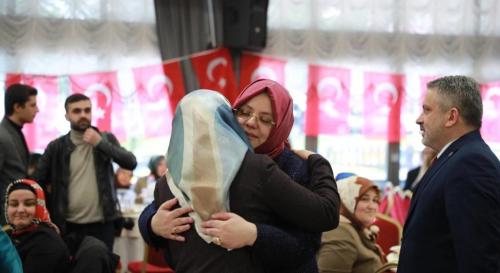 Toplantının ardında da Bursa Aile, Çalışma ve Sosyal Hizmetler İl Müdürlüğü tarafından davet edilen 250 şehit yakını ile yemekte biraraya gelen Bakan Selçuk, hitabına “Bugün, şehadet şerefine nail olmuş kahramanlarımızı yâd etmek, siz değerli şehit yakınlarımızla hasbihal etmek üzere bir aradayız.” ifadeleriyle başladı. “Şehit ve gazilerimizin bizlere iki emaneti vardır. Birisi vatan, diğeri ise sizlersiniz.” diyen Bakan Selçuk, şehit ve gazilerin bir aileye değil, 82 milyon üyesi olan büyük bir aileye sahip olduğuna dikkat çekti. Bakan Zehra Zümrüt Selçuk, devlet olarak şehit yakınlarımıza hiç tereddüt etmeden destek vermeye devam ettiklerini vurguladı ve eğitimden istihdama kadar birçok alanda sağlanan destek ve hizmetlerin çerçevesinin vazife ve harp malullerini de kapsayacak şekilde genişletildiğini söyledi. Yapılan hukuki düzenlemelerle; şehit yakınlarımızdan iki, gazi ve terör mağduru sivil vatandaşlarımızdan bir kişiye istihdam hakkı sağlandığını hatırlatan Bakan Selçuk, başkasının yardım ve desteği olmadan yaşayamayacak derecede ağır malul olan gazilerimize sağlanan bakım desteğinin net asgari ücretin iki katına çıkarıldığını kaydetti. Yılda iki defa olan şehit yakını ve gazi atamalarında süre ve 45 yaş sınırının kaldırıldığını da belirten Bakan Selçuk, toplamda 34 bin 889 şehit yakını, gazi ve gazi yakınının kamu kurumlarında istihdamının sağlandığını dile getirdi. Bakan Selçuk 162 bin 64 kişiye de ücretsiz seyahat kartı basıldığını ifade etti.