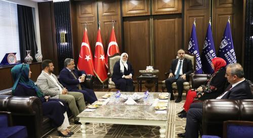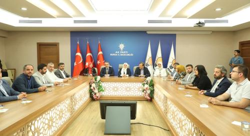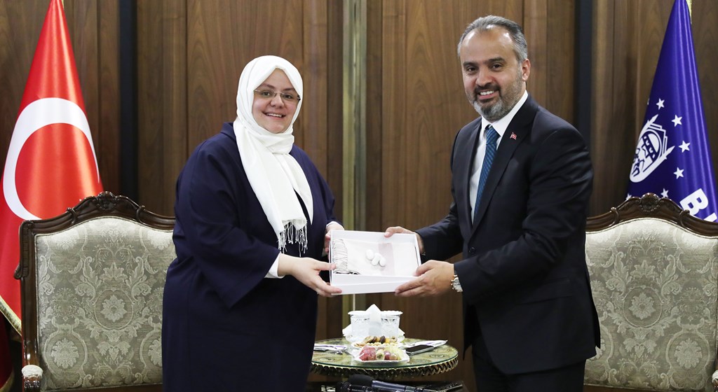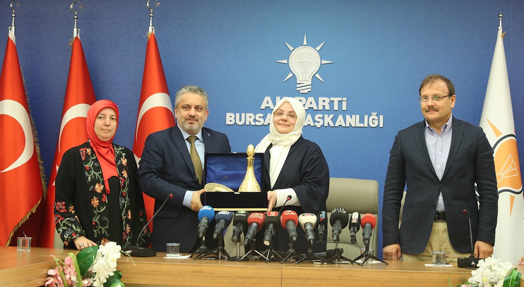 AK Parti İl Başkanlığı’nı da ziyaret eden Bakan Selçuk’un bir sonraki adresi Bursa Büyükşehir Belediyesi oldu.  Belediye Başkanı Alinur Aktaş, Bakan Selçuk’a, dağ ilçelerindeki kursiyerlerin dokuduğu özel ipek tabloyu hediye etti.