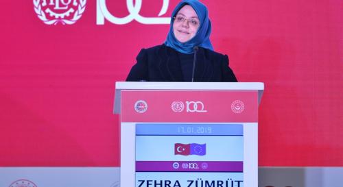 Aile, Çalışma ve Sosyal Hizmetler Bakanı Zehra Zümrüt Selçuk, Uluslararası Çalışma Örgütünce (ILO) Ankara’da düzenlenen “Çalışma Hayatında Sosyal Diyaloğun Geliştirilmesi Projesi”nin kapanış toplantısına katıldı.