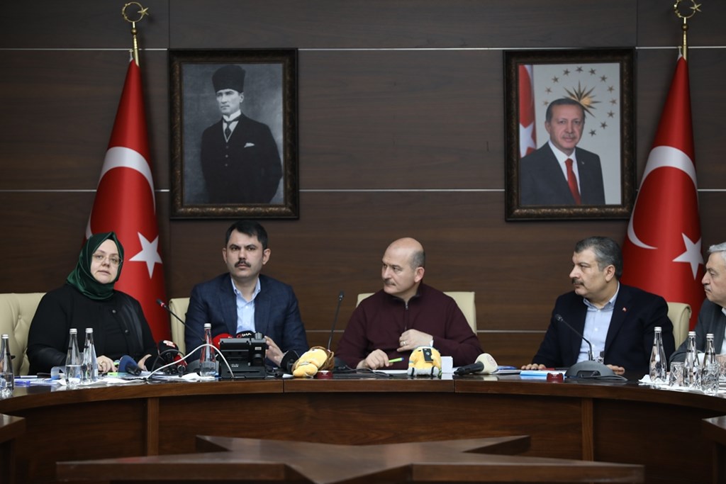 İlk olarak Elazığ Valiliği’ni ziyaret eden Bakan Selçuk, Çevre ve Şehircilik Bakanı Murat Kurum, İçişleri Bakanı Süleyman Soylu, Sağlık Bakanı Fahrettin Koca ile birlikte basın toplantısına katıldı.