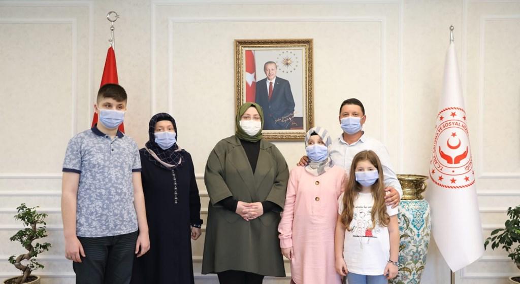 Ravzanur’la birlikte aile fertleri 8 yaşındaki kardeşi Azranur, 15 yaşındaki ağabeyi Emirhan, annesi Rabia Koçaker ve babası Mehmet Koçaker’i makamında kabul eden Bakan Selçuk, ziyaretten dolayı memnuniyetini dile getirdi.