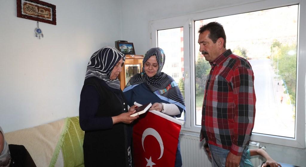 Bakan Selçuk, şehidin ailesine Kuran-ı Kerim ve Türk Bayrağı hediye etti.