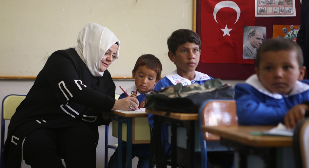 Birinci sınıfların dersliğini ziyaret eden Bakan Selçuk, minik öğrencilerle sohbet etti, öğretmenlerinden bilgi aldı.