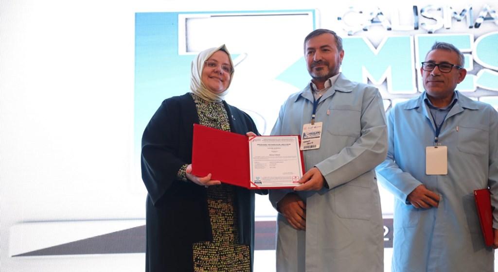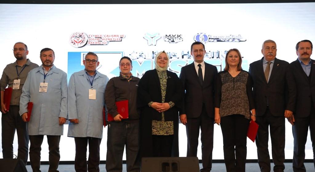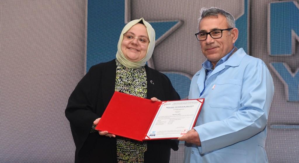Mesleki yeterlilik belgesi almaya hak kazanan katılımcılar belgelerini Bakan Selçuk’un elinden aldı.