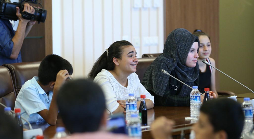 Bakanlık binasında gerçekleşen kabulde Bakan Selçuk, çocuklarla tek tek sohbet etti, yolculuklarının nasıl geçtiğini sordu.