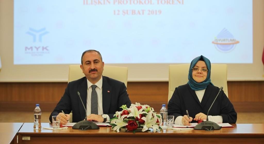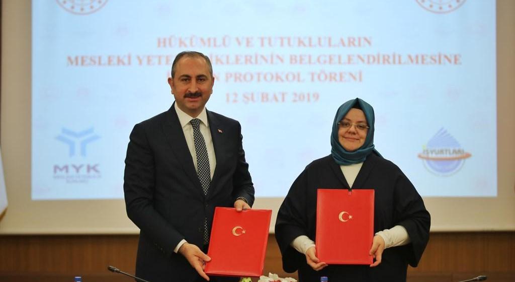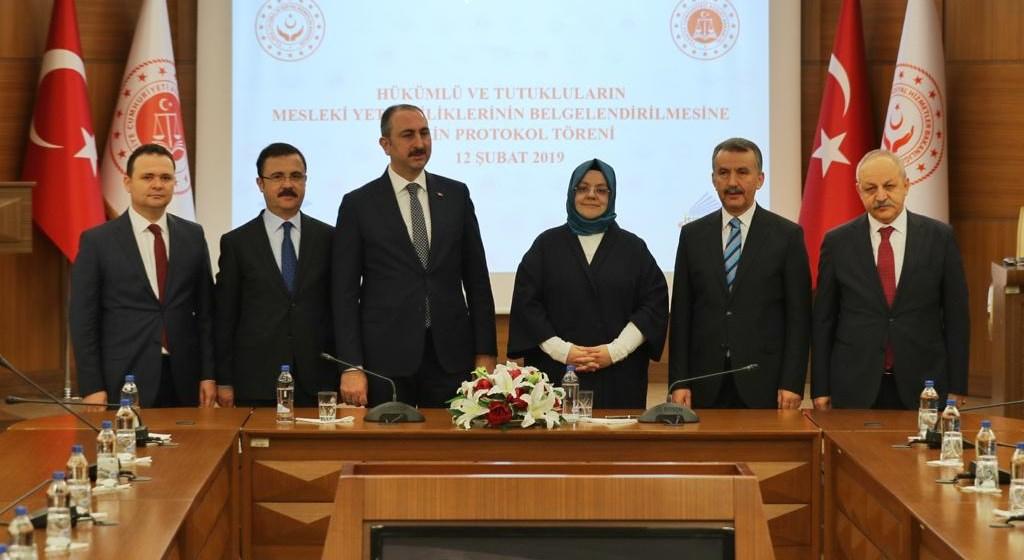 Aile, Çalışma ve Sosyal Hizmetler Bakanı Selçuk, Adalet Bakanı Abdulhamit Gül ile Hükümlü ve Tutukluların Mesleki Yeterliliklerinin Belgelendirilmesine İlişkin işbirliği protokolü imzaladı.