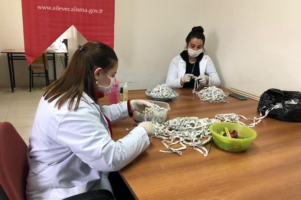 Antalya’daki Çocuk Evleri Sitesi, Yalova Bakım Rehabilitasyon ve Aile Danışma Merkezi ile Milli Piyango Bakım Rehabilitasyon ve Aile Danışma Merkezi, Şanlıurfa 80. Yıl Bakım Rehabilitasyon ve Aile Danışma Merkezi, Elazığ Beyyurdu Engelsiz Yaşam Bakım Rehabilitasyon ve Aile Danışma Merkezi, Çankırı Bakım Rehabilitasyon ve Aile Danışma Merkezi de maske üretiminde rol alıyor.