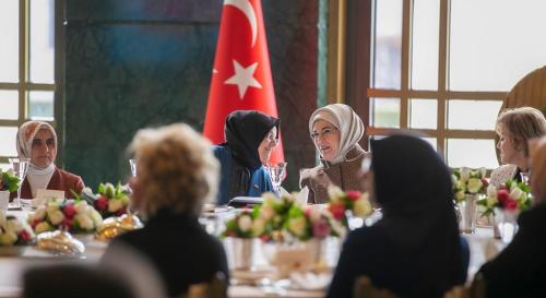Konuşmaların ardından Aile, Çalışma ve Sosyal Hizmetler Bakanı Zehra Zümrüt Selçuk, Emine Erdoğan’a tablo hediye etti. Program Aile fotoğrafı çekimiyle sonlandı.
