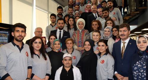 Cumhurbaşkanı Recep Tayyip Erdoğan’ın eşi Emine Erdoğan Hanımefendi, Mardin Büyükşehir Belediyesi Gençlik Merkezi’nde gençlerle bir araya geldi.