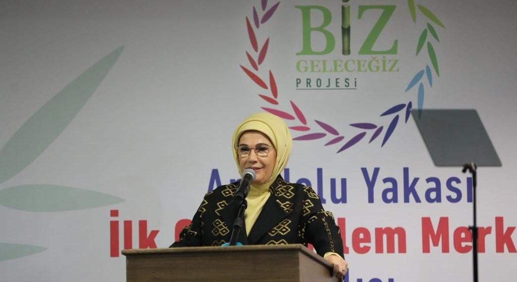 Emine Erdoğan, “Onlar olmasa bu çalışmalar hayat bulamaz. Hepimiz sadece kendi çocuklarımıza değil, etrafımızdaki tüm çocuklara kendi çocuğumuz nazarıyla bakmalıyız.” diye konuştu.