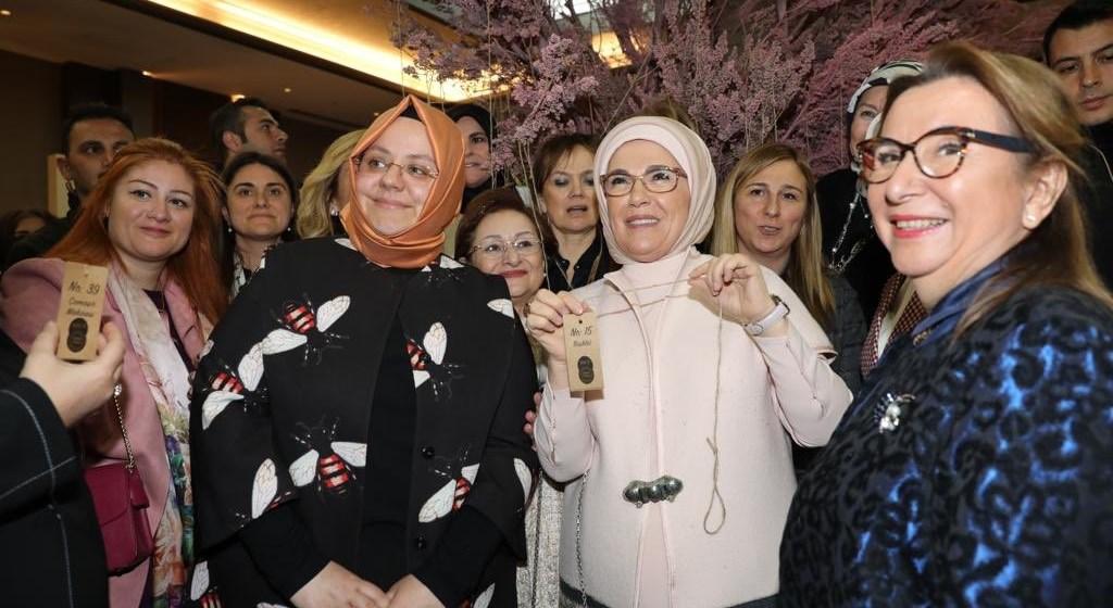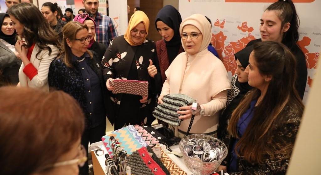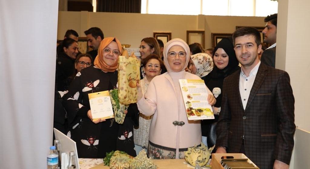 Erdoğan, el sanatı ürünleri ile yıkanabilir çocuk bezi ve alüminyum folyo yerine doğa dostu balmumundan üretilen folyoyu yakından inceledi. Ayrıca Erdoğan, Bakan Selçuk ile birlikte KADEM tarafından desteklenen kadın girişimcilerin yaptıkları el sanatları ürünlerini inceledi, Çevre ve Şehircilik Bakanlığı’nın “sıfır atık” standında da bilgi aldı.