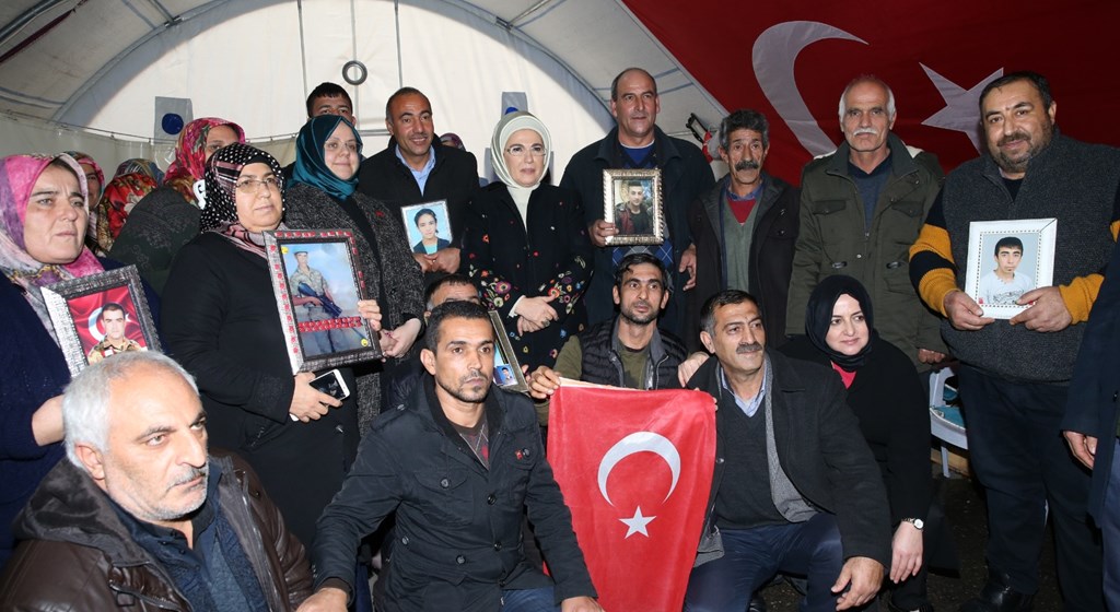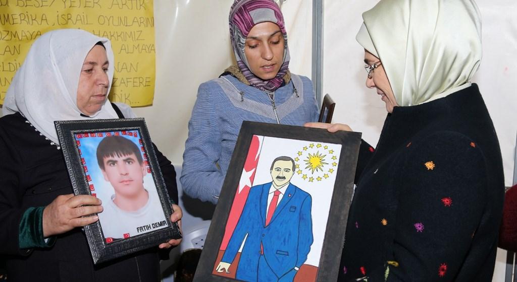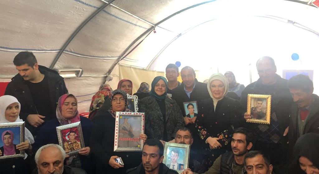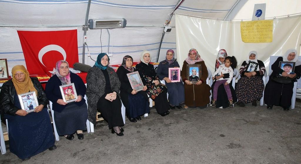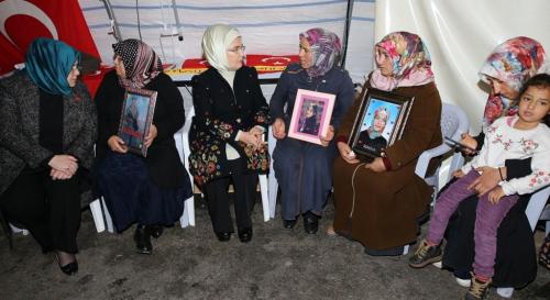 Cumhurbaşkanı Recep Tayyip Erdoğan’ın eşi Emine Erdoğan ile Aile, Çalışma ve Sosyal Hizmetler Bakanı Zehra Zümrüt Selçuk, terör örgütü tarafından dağa kaçırılan çocukları için oturma eylemi yapan Diyarbakır annelerine destek ziyaretinde bulundu.