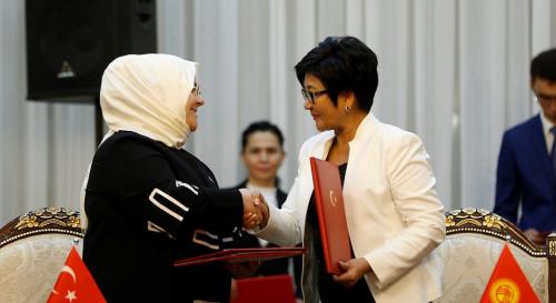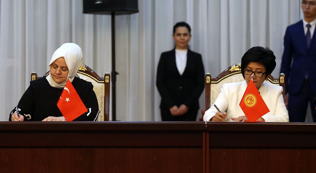 Tören öncesi Aile, Çalışma ve Sosyal Hizmetler Bakanı Zehra Zümrüt Selçuk, Kırgızistan Çalışma ve Sosyal Kalkınma Bakanı Taalaygül Isakunova ile baş başa görüştü. Görüşmenin ardından bakanlar, iki ülke arasında işbirliğini geliştirmek ve güçlendirmek amacıyla mutabakat zaptı imzaladı.